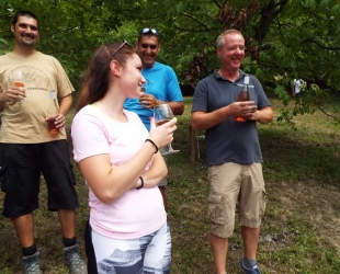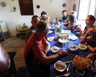 A napok óta tartó közel 40 fokos hőség után üdítő meglepetésként érte Egyesületünk 50 fős csoportját a szemerkélő eső és a 22 fok körüli hőmérséklet, ami az augusztus 11-i program során várta a látogatókat a program első állomásán a Grábóci ortodox kolostornál. A gyönyörű környezetben fekvő Szent Mihály és Gábriel arkangyalok templom történetét, az ott élők életét és ortodox szokásait kedves idegenvezetőnk szakszerű tolmácsolásával ismerhette meg a szabadszállási csoport. A több, mint egy órás programot követően a csapat egyik része autóbusszal Szekszrádra utazott, ahol egy kétórás program keretében megismerkedtek a település történetével, nevezetességeivel, hírességeivel, míg egy 20 fős társaság az országos kék jelzést követve, egy 12 km-es kellemes gyalogtúrát követően érkezett meg a program következő állomására a szabadszállási Győgyei Csaba pincéjéhez, a GYŐGYEI BIRTOK-ra. A házigazda bemutatta vállalkozását, a birtokot, majd a pincében egy kétéves "seprő-pálinkával" kívánt jó étvágyat az időközben elkészült bográcsos marhapörkölthöz. Ebéd után a program ismét a pincében folytatódott, ahol a "ház" vörösborainak "minősítése" következett, majd Farkas Zoltán ajándék átadásával köszönte meg házigazdáink kedvességét és vendégszeretetét. Útban hazafelé nem hagyhattuk ki a méltán nevezetes Dunaföldvári-fagyi-megállót és kissé fáradtan, de élményekben gazdagodva érkeztünk vissza Szabadszállásra. További fotókat találsz ide kattintva. |
