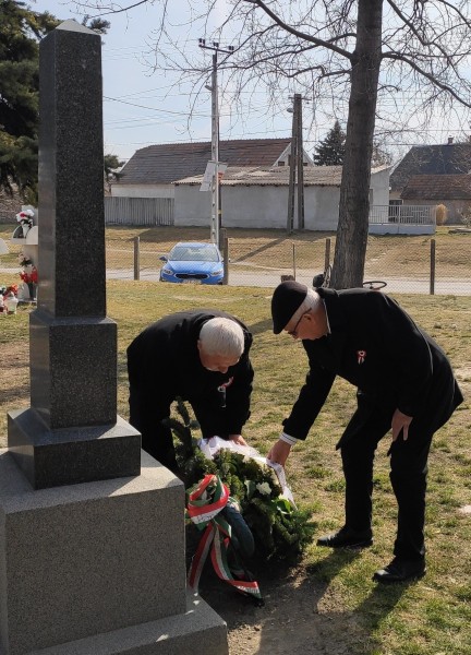Az egyesület által 2020-ban állított emlékműnél Mucsányi Pálné tanárnő szavalatával kezdődött a megemlékezés, majd a beszédet követően a Petőfi Sándor Általános Iskola és a Honvéd Nyugdíjas Klub képviselői helyezték el koszorúikat tisztelegve a ’48-as hősök előtt.