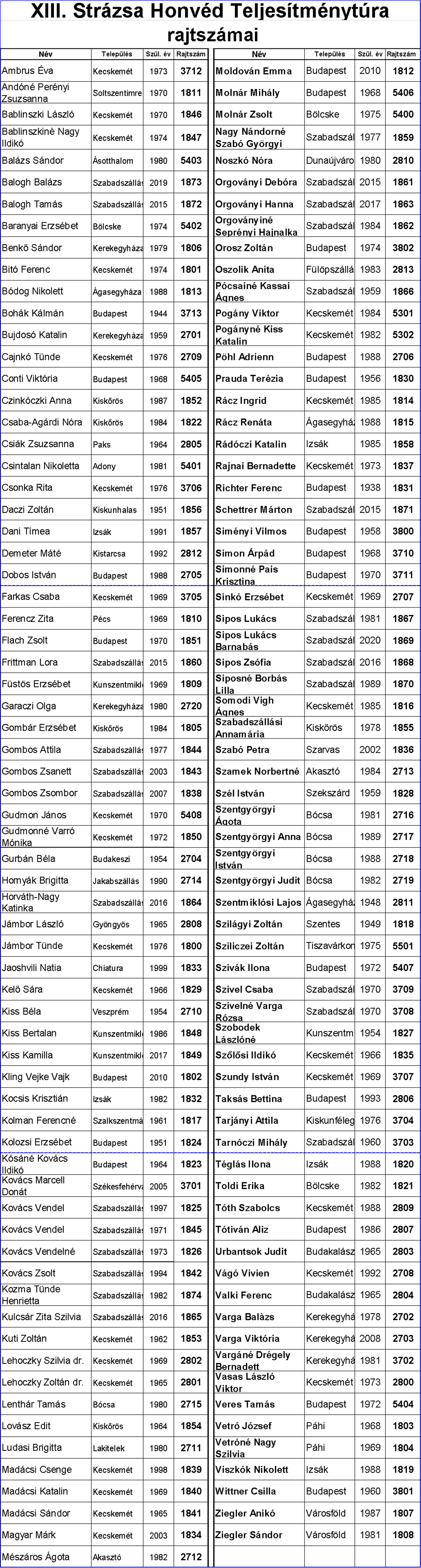 Előnevezettek rajtszámai